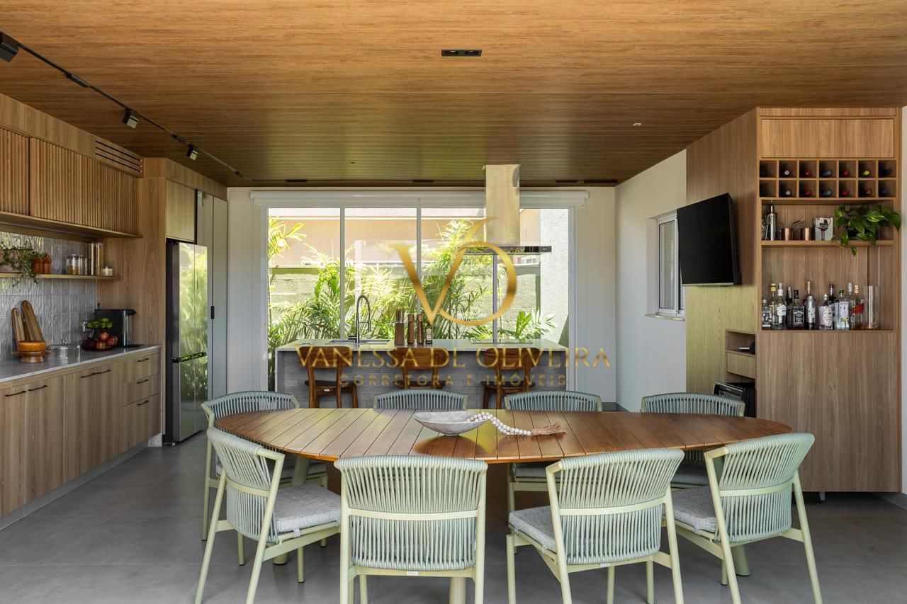 A ampla área gourmet é totalmente equipada, com marcenaria planejada, balcão gourmet com coifa, cooktop por indução, lava-louças, calha úmida e dois ar-condicionados de 24.000 BTUs inverter camuflados em ripado de marcenaria.