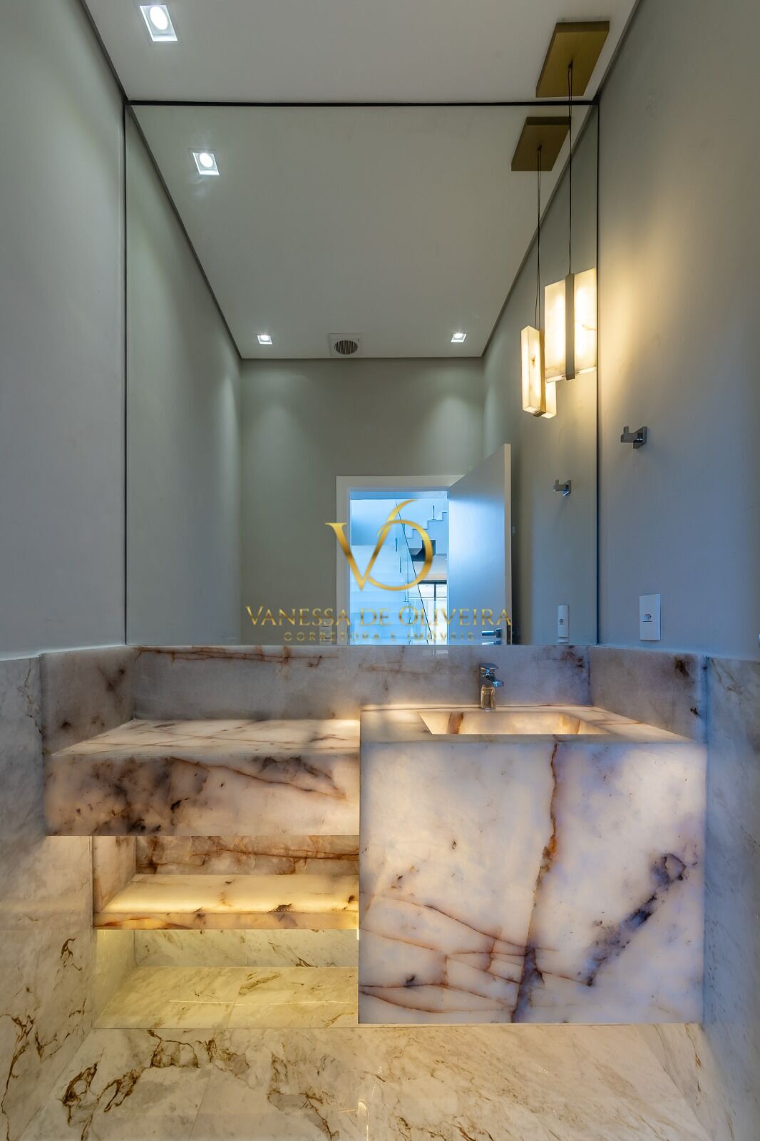 - Lavabo com pedra Onix translúcida iluminada.