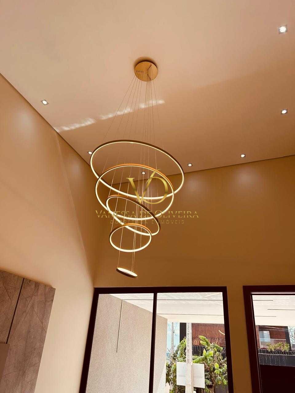 A casa possui três dormitórios, sendo dois apartamentos com banheiro privativo e uma suíte master com closet e espelho com LED touch no banheiro. Ao todo, são quatro banheiros, além de um lavabo funcional. A sala é ampla, com pé-direito alto de 6 metros, proporcionando maior sensação de espaço e iluminação natural, já entregue com um lindo lustre.