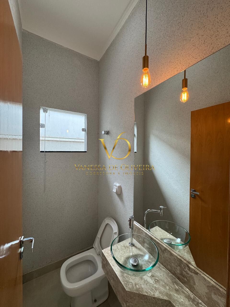➡ Banheiros com bancada em mármore travertino esculpida, box, nichos e gabinetes;